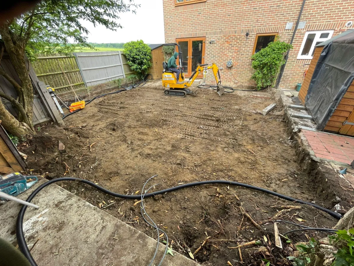 We then complete the specific work – installing retaining walls with proper drainage behind them, laying drainage pipes and connecting to soakaways, leveling and compacting ground for patios or lawns, or whatever groundworks your project requires.