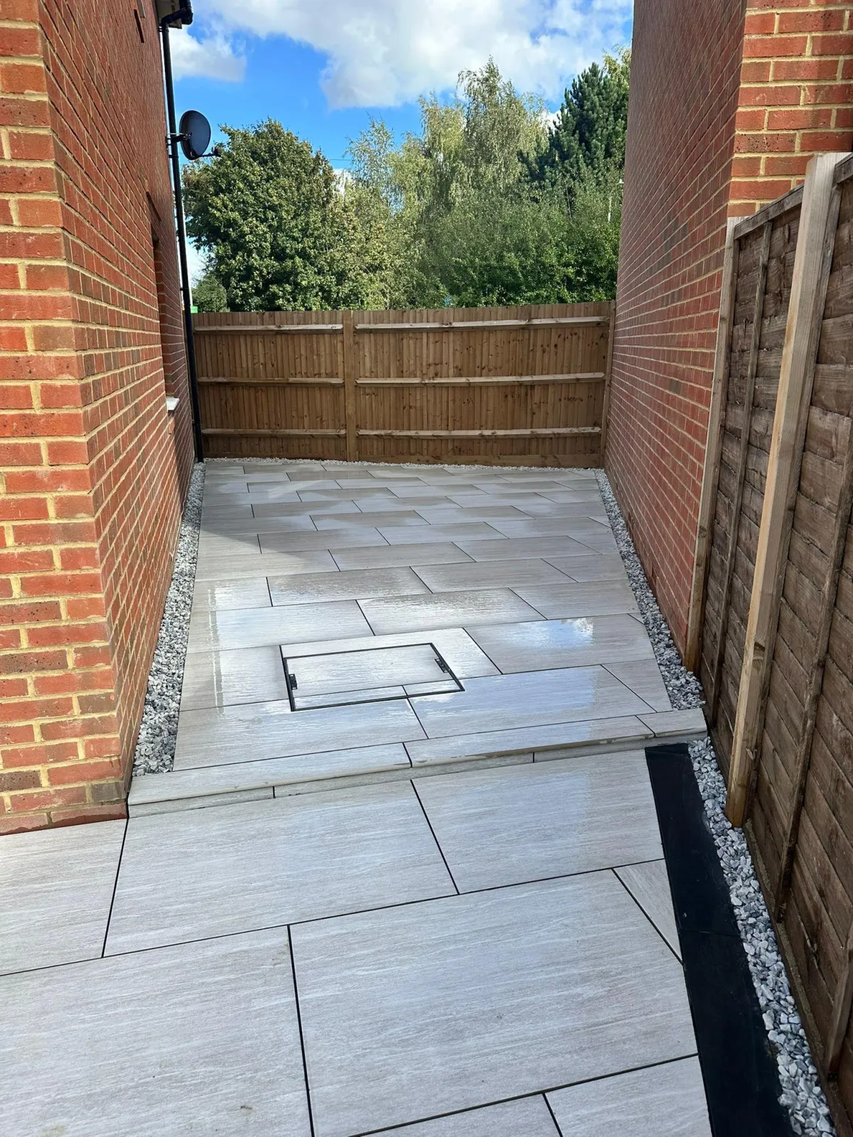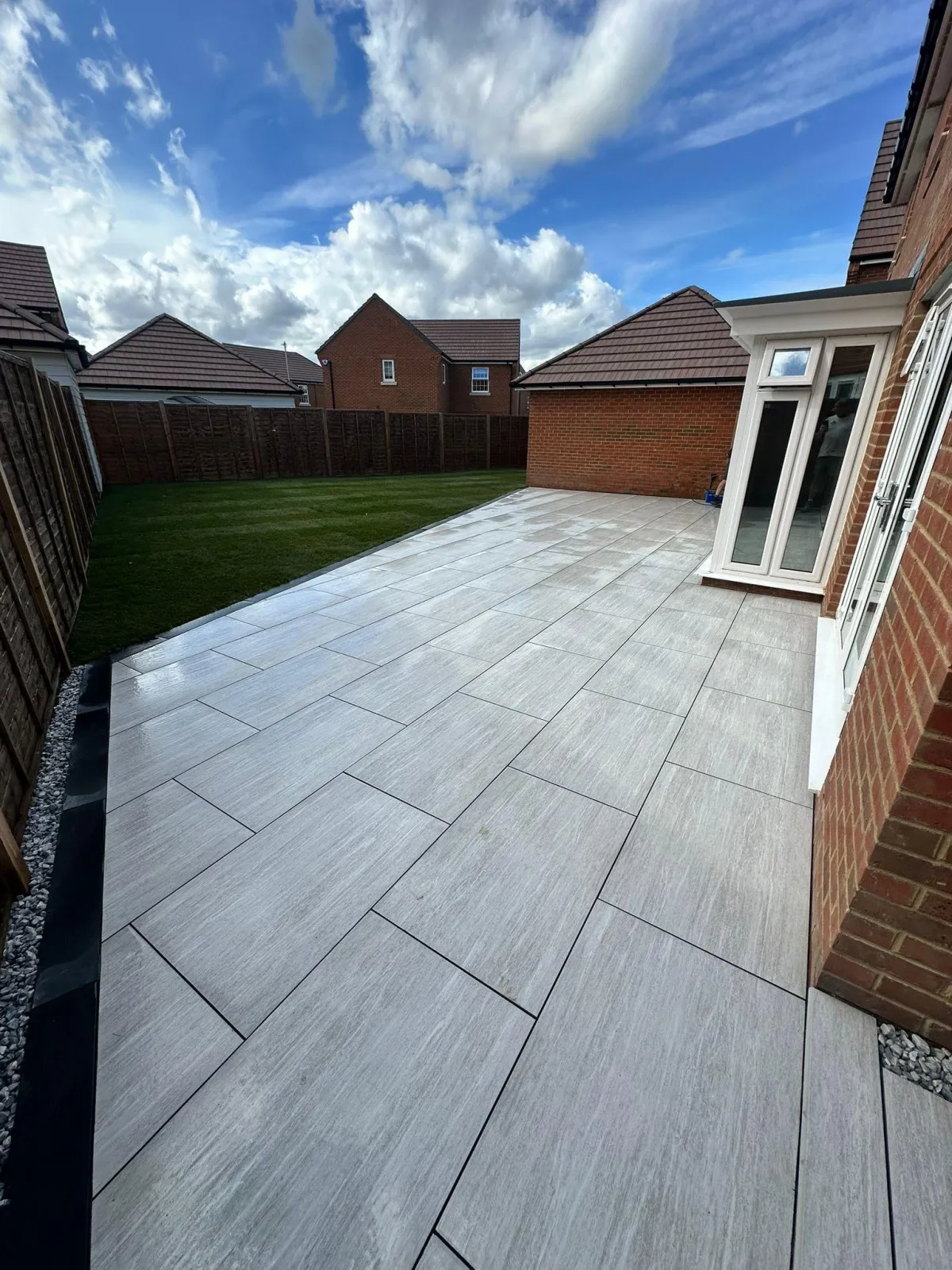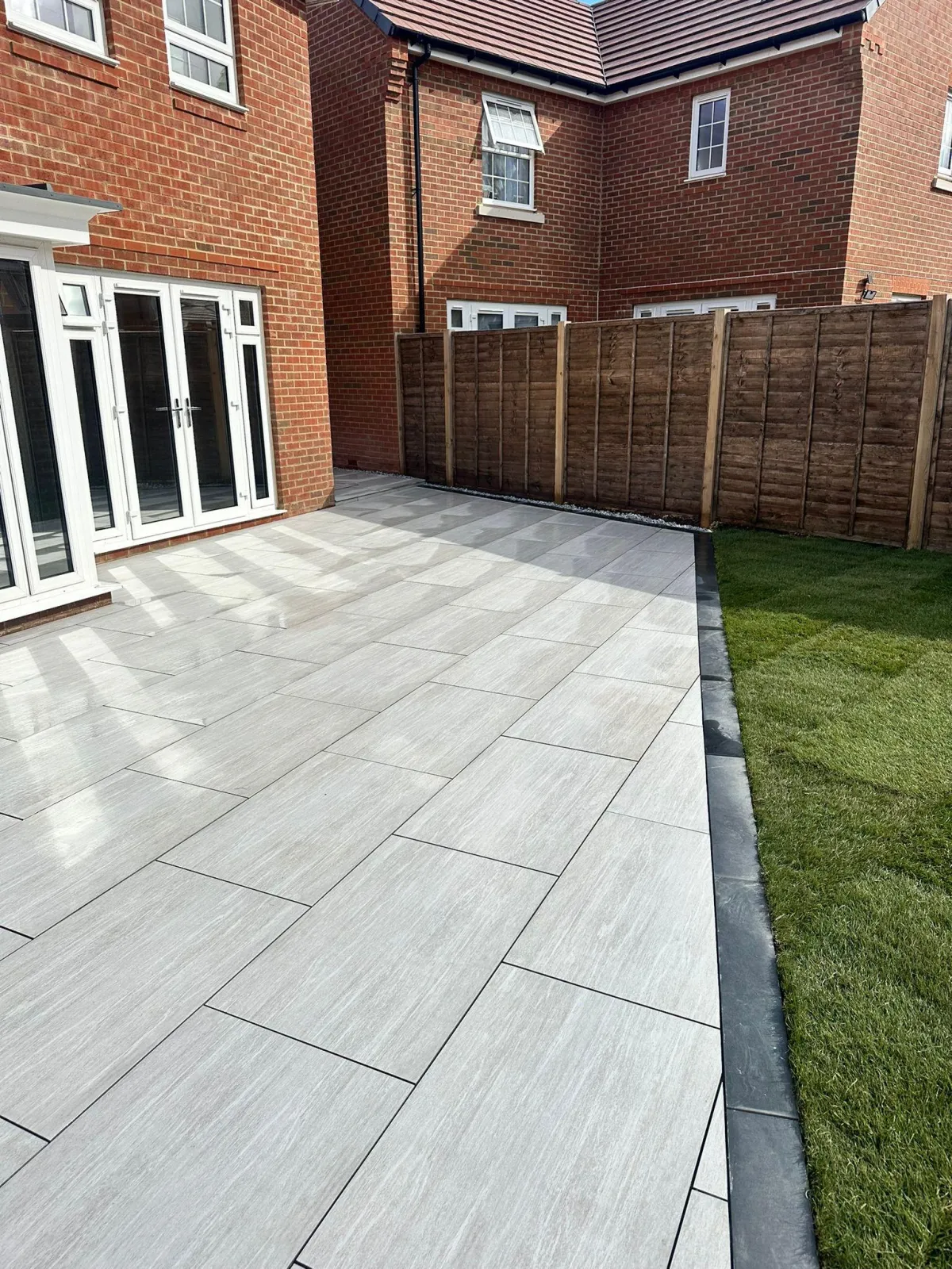 Modern porcelain designed for outdoor use features textured or riven finishes that provide excellent grip, even when wet. We only install porcelain rated for external use with appropriate slip resistance (R11 rating). Avoid polished finishes for uncovered patios – we'll advise you on the safest options during consultation.