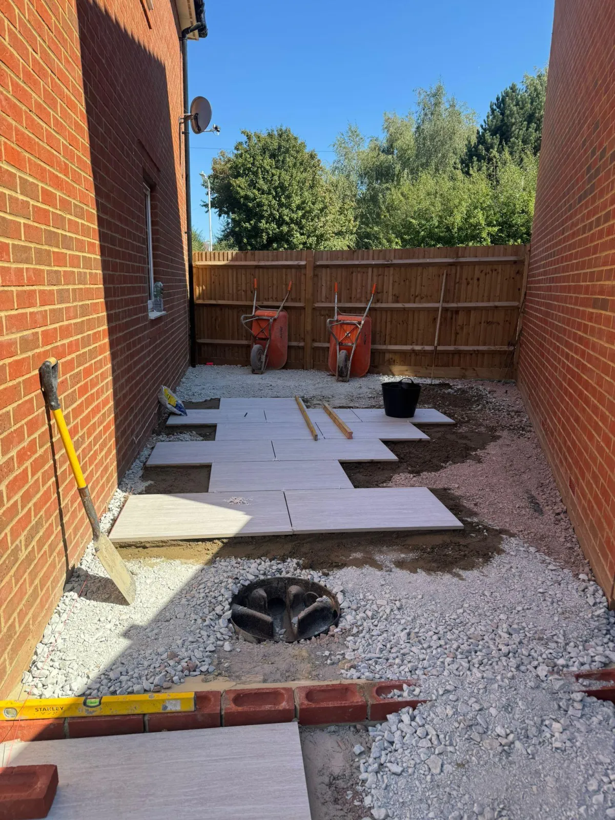 Our team begins with thorough ground preparation – excavation, sub-base compaction, and proper drainage installation.